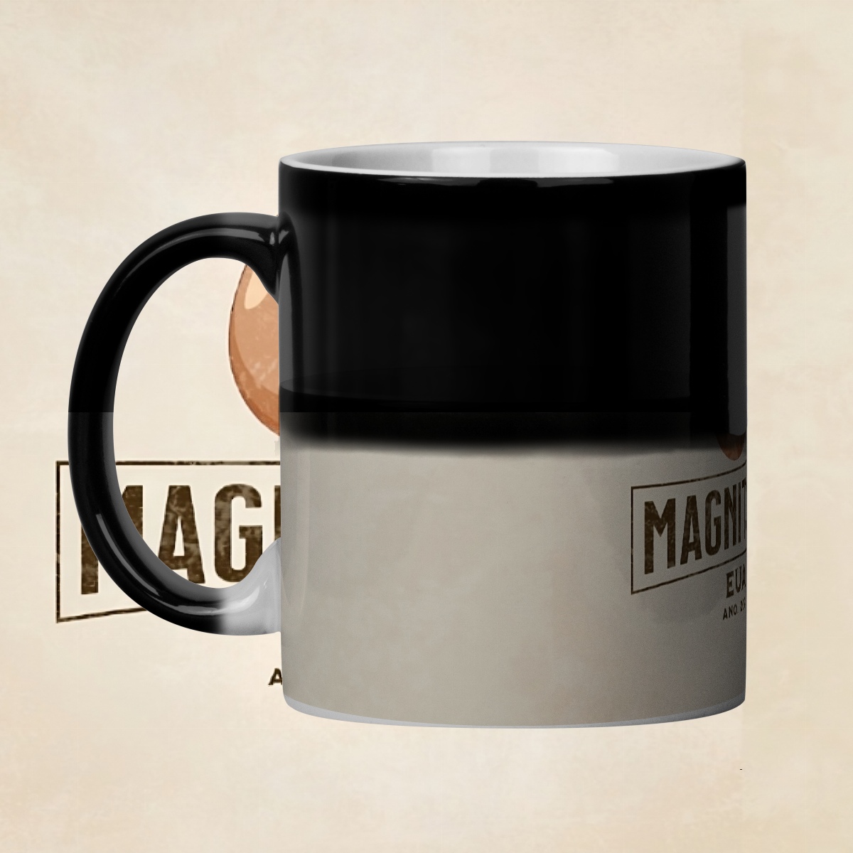 Quando você coloca um líquido quente dentro (como café, chá ou chocolate), a mágica acontece: a imagem escondida aparece como num passe de mágica!